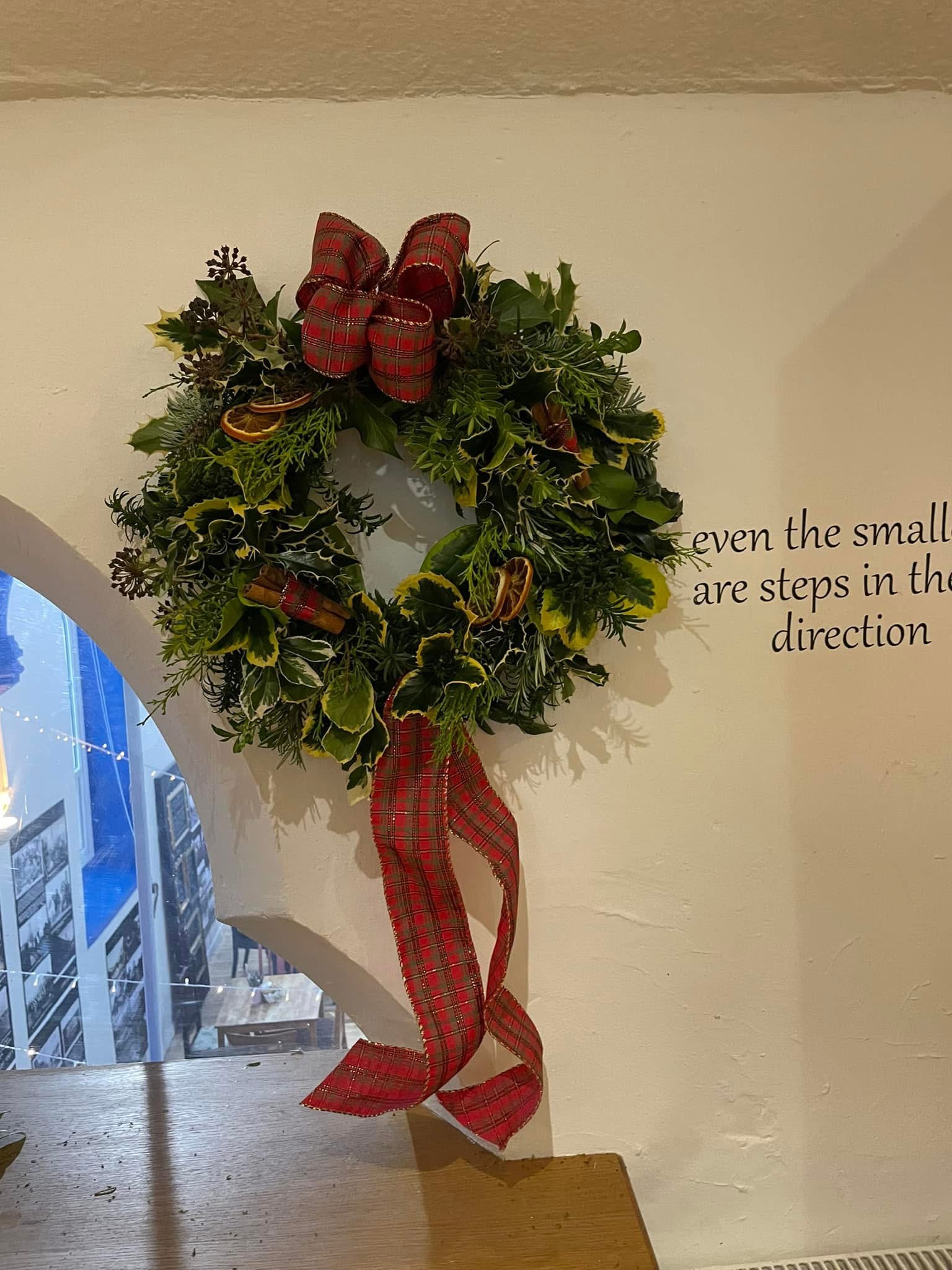 This is a popular one – make a door wreath using freshly gathered greenery, learn how to wire then fill a mossed frame before finishing off with festive pieces such as cones, feathers, cinnamon sticks, dried oranges and a huge choice of ribbons.