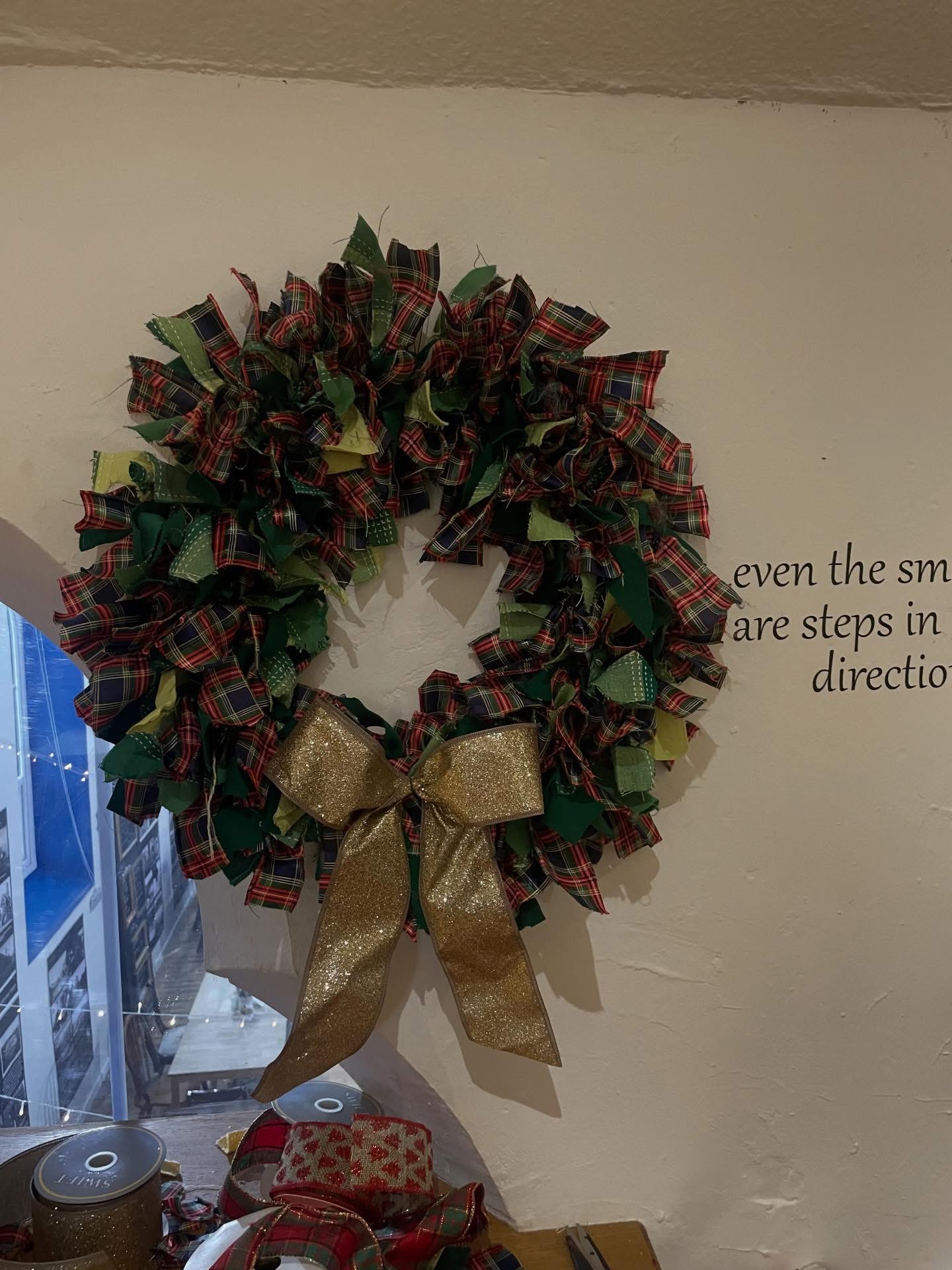 Come and enjoy a relaxing morning making a textile raggy wreath – choose your colours – you may want to choose festive colours or those to match your decor. Our wreaths are made using a wire frame and there will be ribbons, cones & feathers should you want to embellish your wreath. Please bring a sharp pair of scissors with you and any special fabric or items you wish to incorporate to your wreath.
